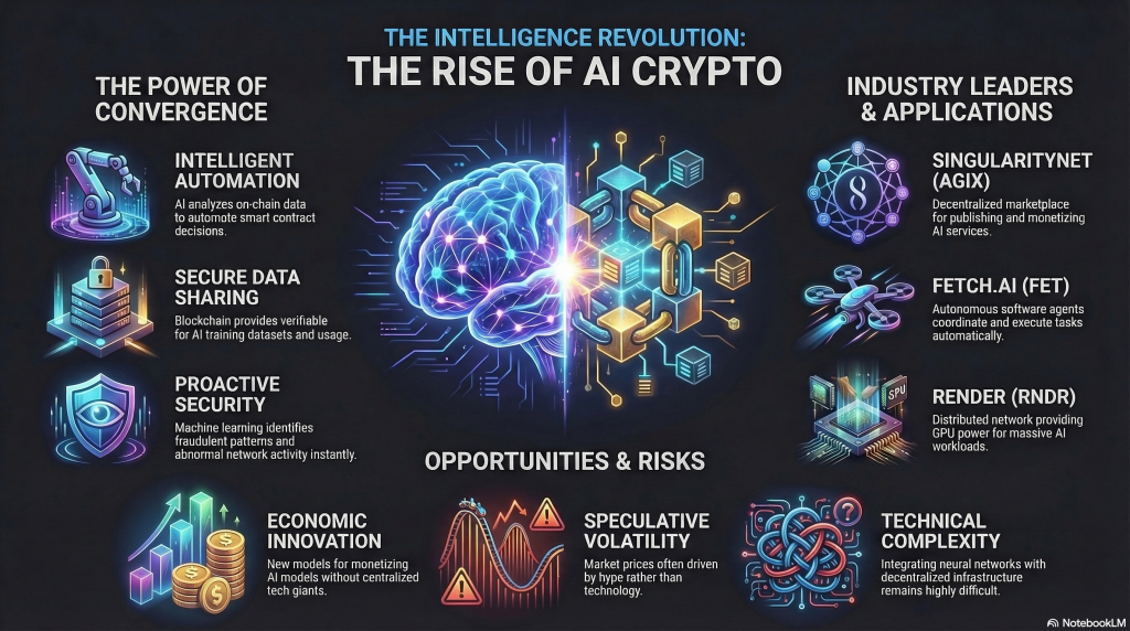 This convergence has given rise to a growing category often referred to as AI crypto. Instead of treating blockchain purely as a financial ledger, these projects attempt to integrate artificial intelligence into decentralized networks, data platforms, and digital marketplaces.