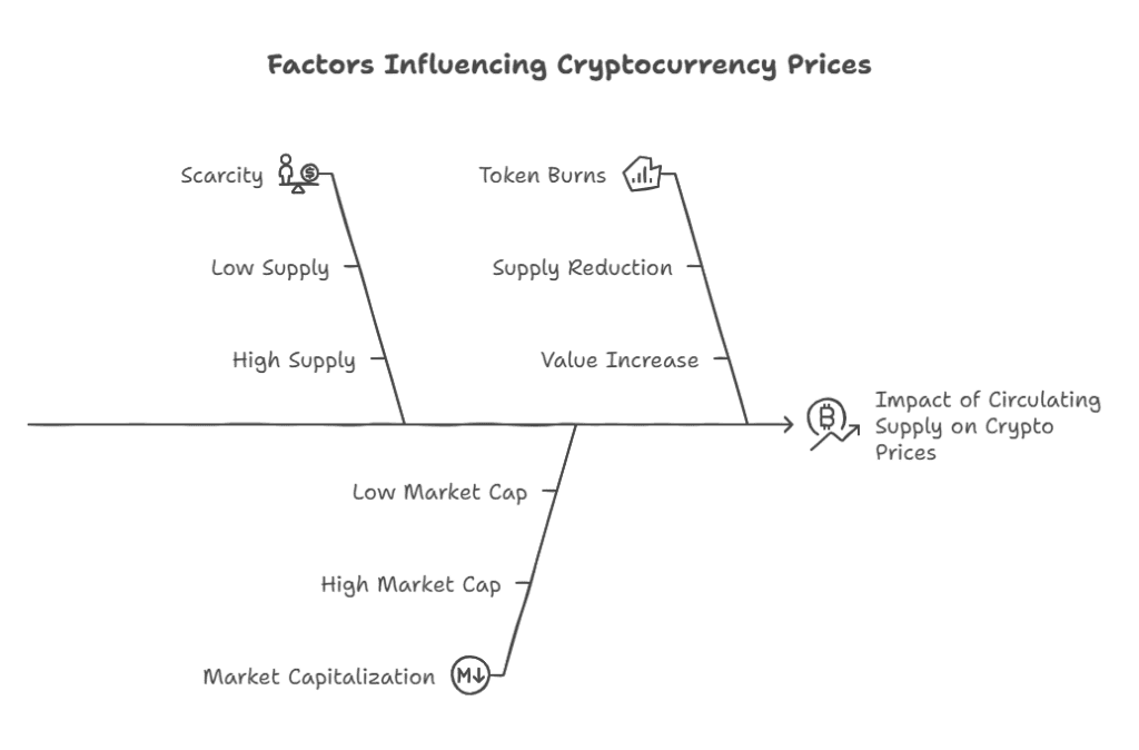 Circulating supply influences price primarily through its role in calculating market capitalization. A cryptocurrency with a larger supply may require more capital entering the market to significantly increase its price.
