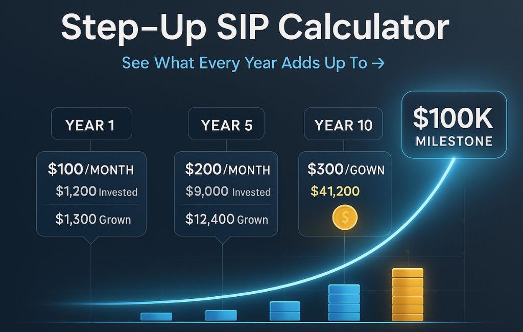 A step-up SIP calculator helps explore that scenario. By modeling how contributions increase over time, it allows you to compare different investment paths and see how compounding responds when the amount invested grows each year.